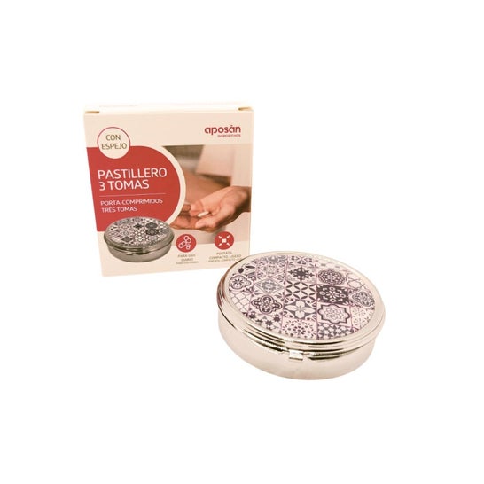 Aposan Porta Comprimidos 3 Tomas com Espelho é um prático estojo metálico projetado para facilitar o transporte e a organização de comprimidos. Este produto conta com três compartimentos independentes, o que permite classificar e acessar seus medicamentos de maneira confortável e segura.
