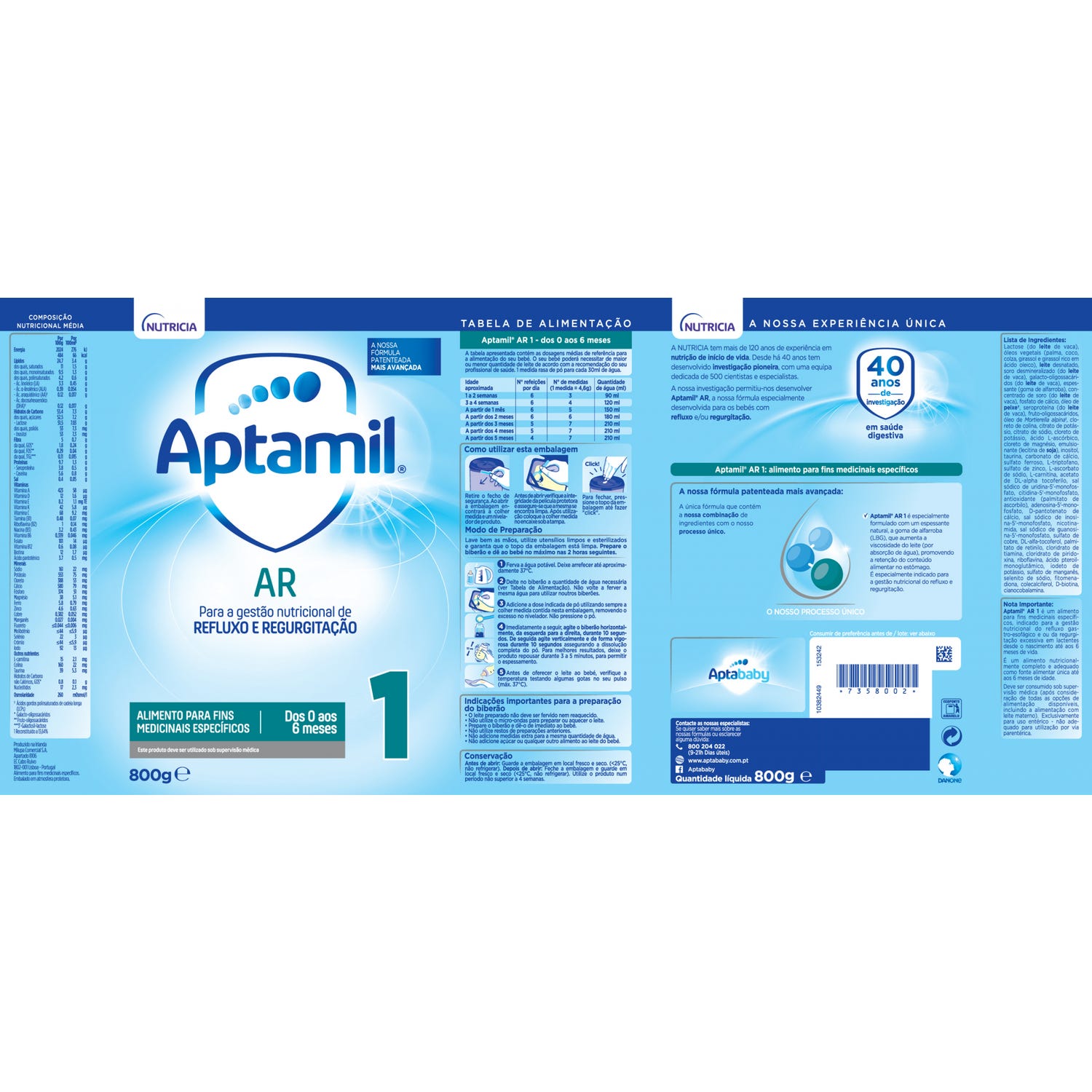 Aptamil AR 1 é um alimento completo, adequado para bebês desde o nascimento até os seis meses. Está enriquecido em nutrientes para favorecer um desenvolvimento ótimo nesta etapa crucial de crescimento.