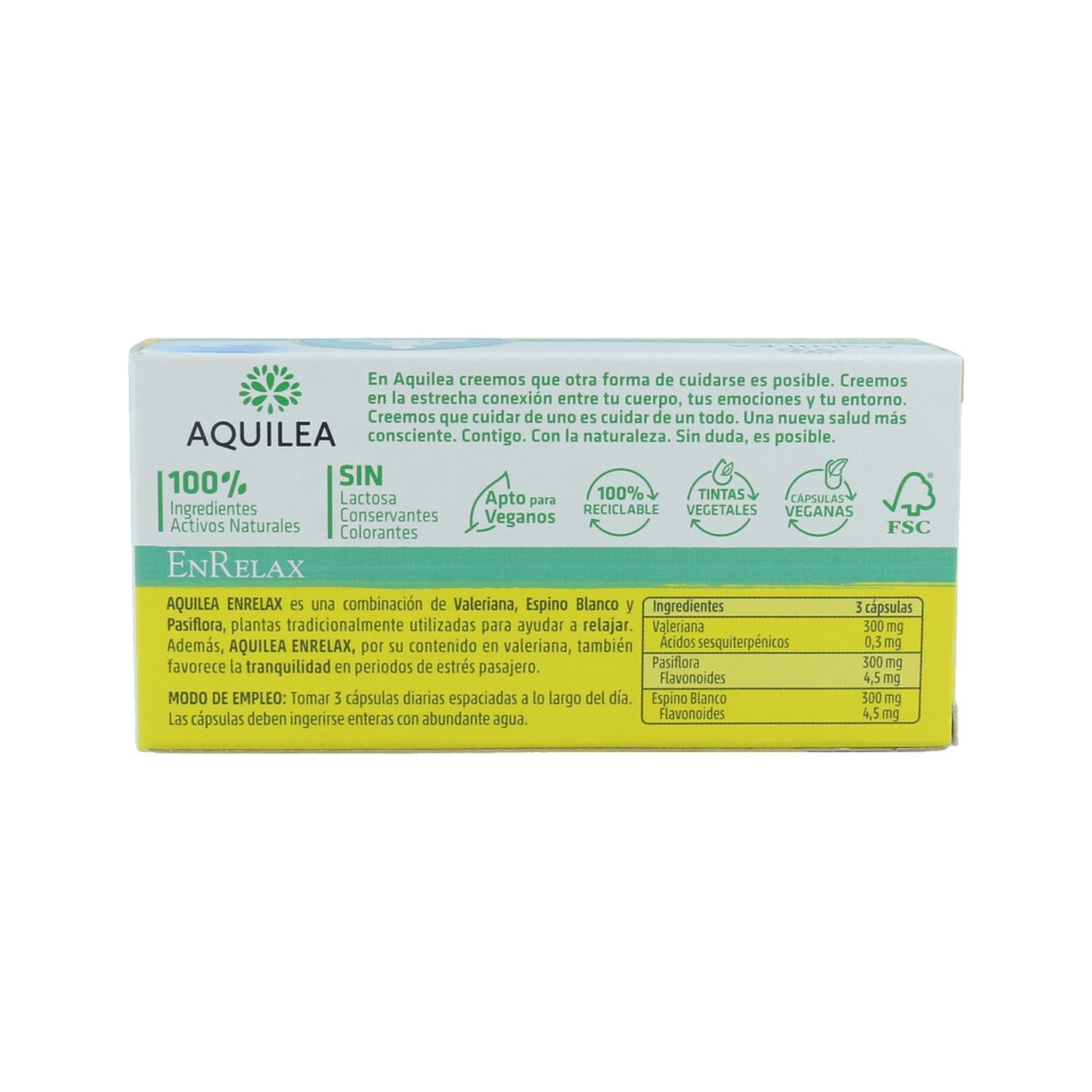 Aquilea EnRelax 24caps é um tratamento natural para relaxamento formulado com uma mistura de valeriana, tradicionalmente utilizada pelo seu suave efeito sedativo e relaxante; passionflower, que melhora a qualidade do sono, ajudando a restaurá-lo progressivamente; e hawthorn, que relaxa e promove o descanso de qualidade.