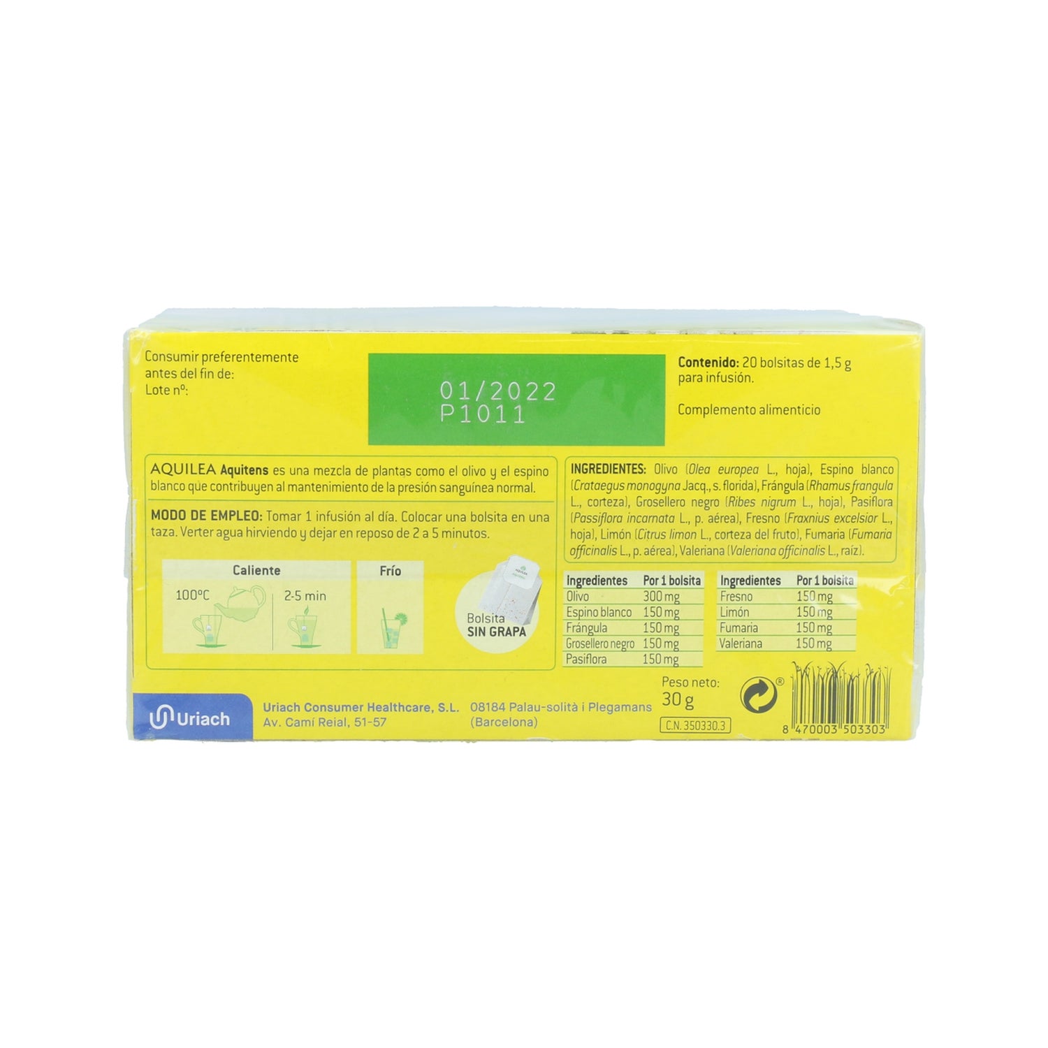 Aquilea Infusions Aquitens 20 saquetas são infusões feitas a partir de uma mistura de plantas como a oliveira e o espinheiro. Contribuem para a manutenção de uma tensão arterial normal.