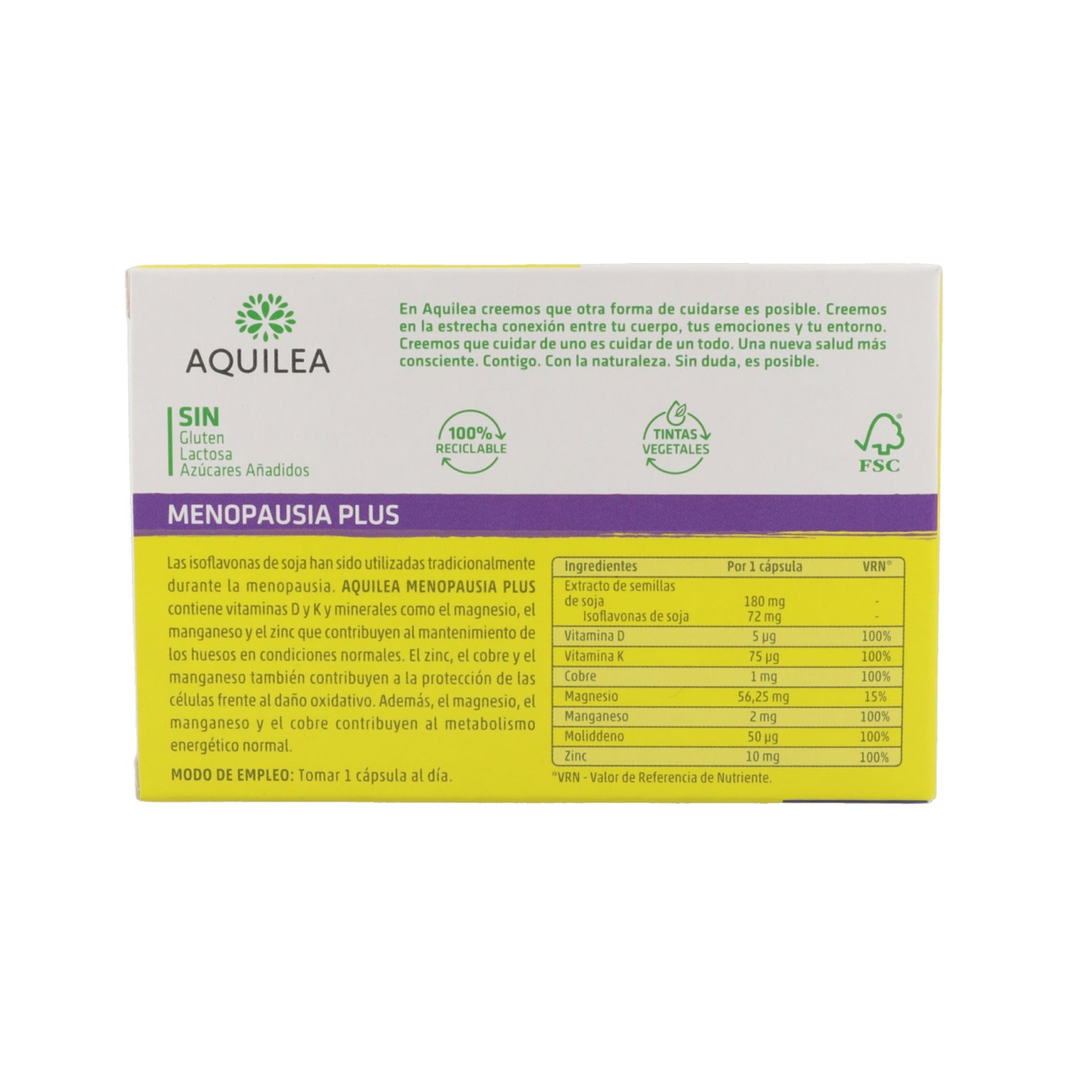 Aquilea Menopausa Plus 30caps é um suplemento alimentar para aliviar os afrontamentos causados pela menopausa, bem como o suor e outros sintomas que causam desconforto. Numa única cápsula, fornece a quantidade diária recomendada de 72mg de isoflavonas de soja.