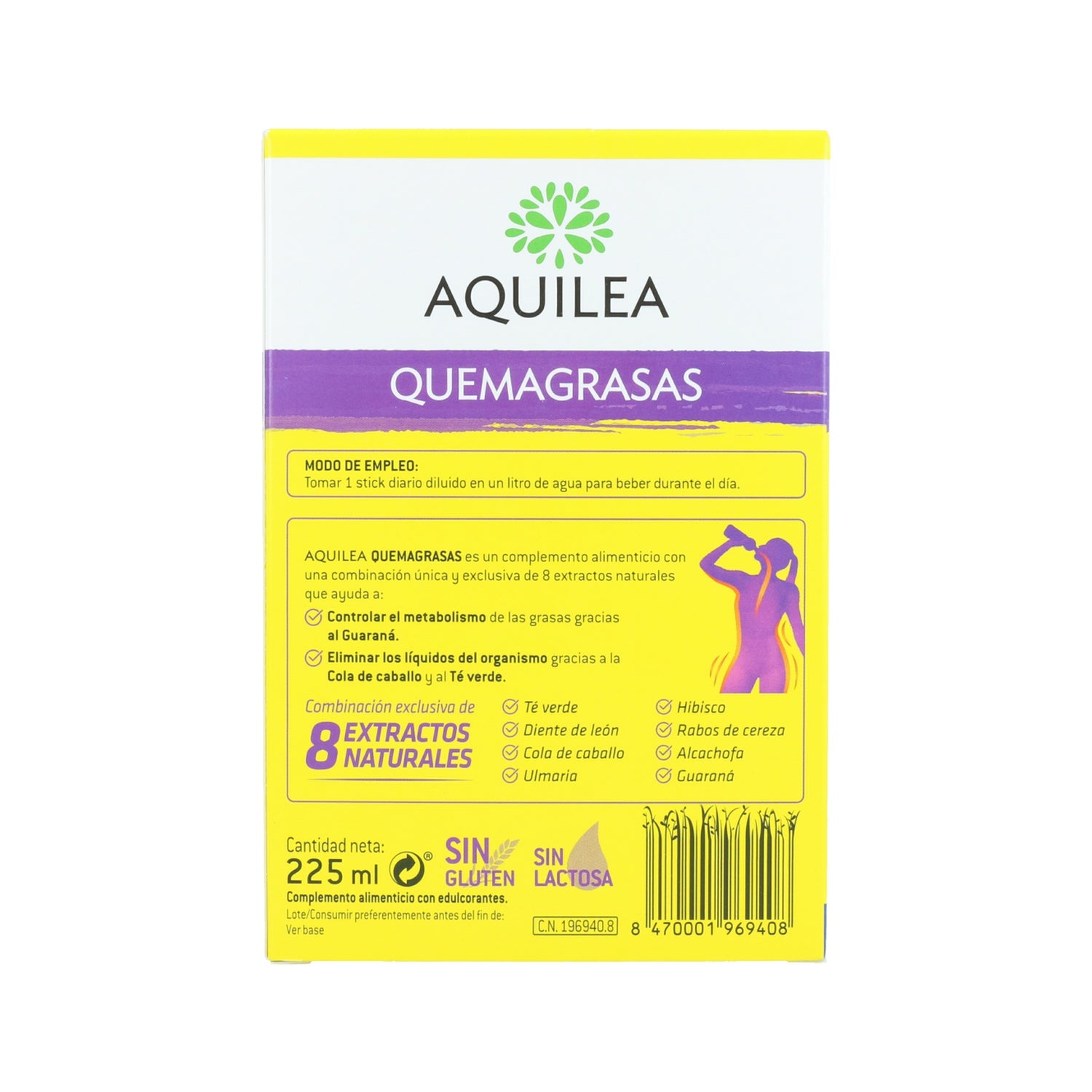Aquilea Quemagrasas 15 paus é um suplemento alimentar sob a forma de um pau solúvel que ajuda a eliminar líquidos e suporta a queima de gordura.