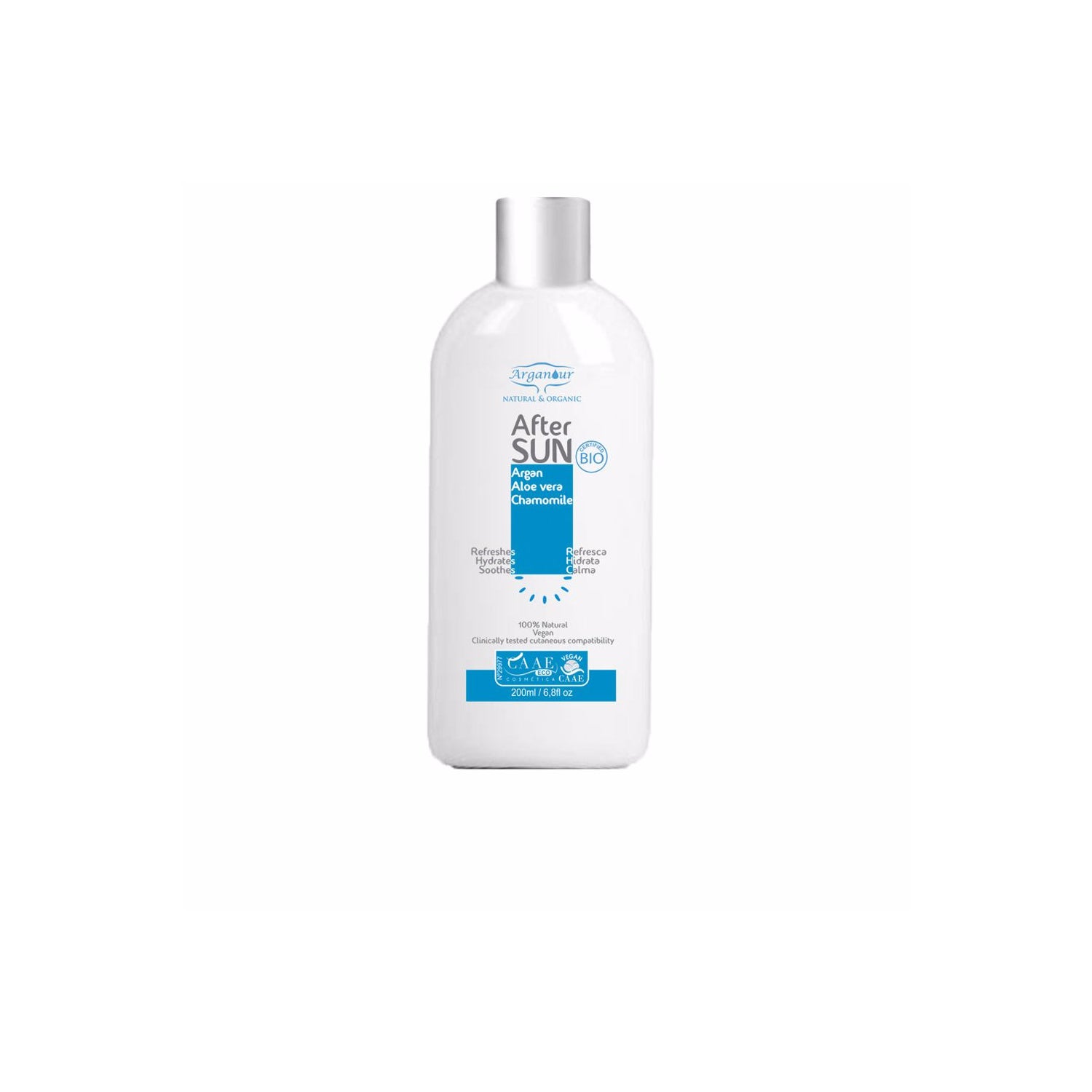 Arganour Natural&Organic Aftersun 200ml é uma excelente opção para cuidar e restaurar a pele após a exposição solar. Este aftersun é formulado com ingredientes naturais e orgânicos, oferecendo uma experiência refrescante, hidratante e calmante.