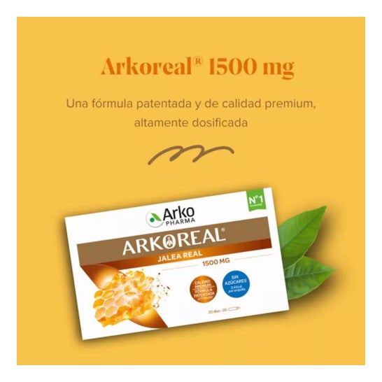 Arkopharma Arkoreal Geleia Real 1500mg Sugar-Free 20fills é um suplemento alimentar composto principalmente por geleia real que ajuda a aumentar a energia e a fornecer apoio restaurador.