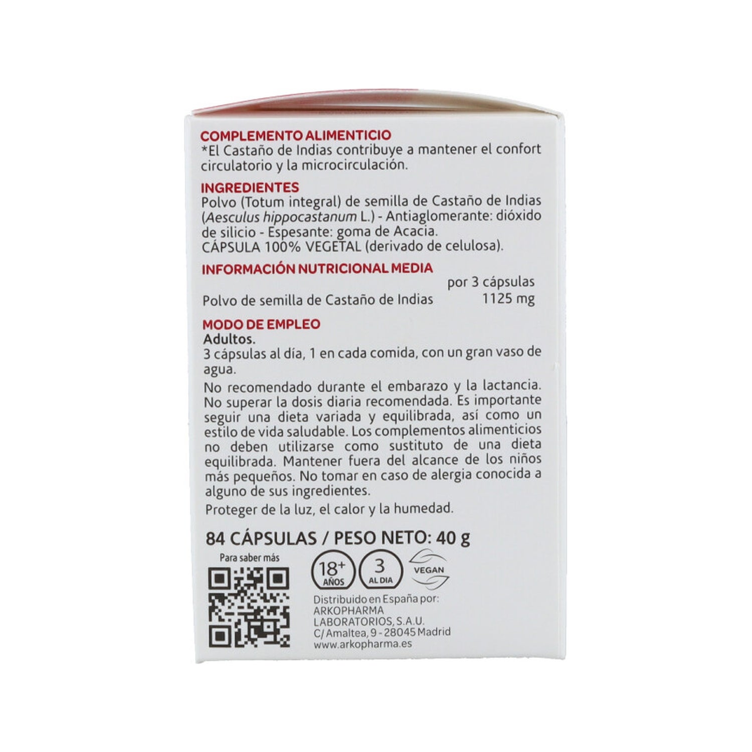Arkopharma Arkocápsulas Castanha da Índia 84caps é um suplemento alimentar que ajuda a manter a circulação e a microcirculação nas pernas.