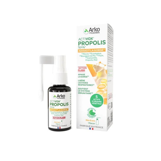 Arkopharma Activox Própolis Spray Garganta é uma solução natural que combina ingredientes de origem vegetal, mel e própolis. Este produto apresenta um agradável aroma a menta, o que o torna uma opção refrescante para o cuidado da garganta.