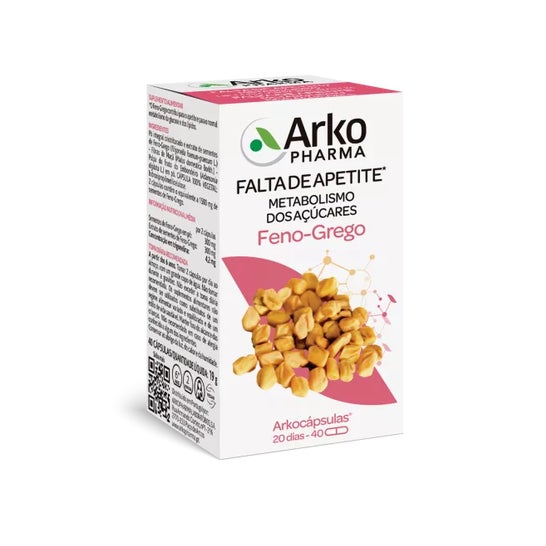 Arkocaps Fenugreek é um suplemento alimentar rico em proteínas, lípidos e sapogeninas de feno-grego, que estimulará o apetite e ajudará a aumentar a massa muscular. Este suplemento é ideal em casos de emagrecimento extremo ou para desportistas e culturistas, pois ajuda a aumentar a massa e o volume muscular em