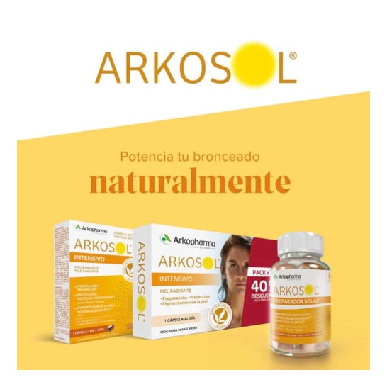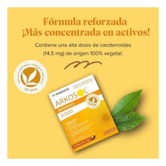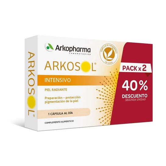 Arkopharma Arkosol Intensivo 2x30caps é um suplemento alimentar que ajuda a reforçar e acelerar o bronzeamento .