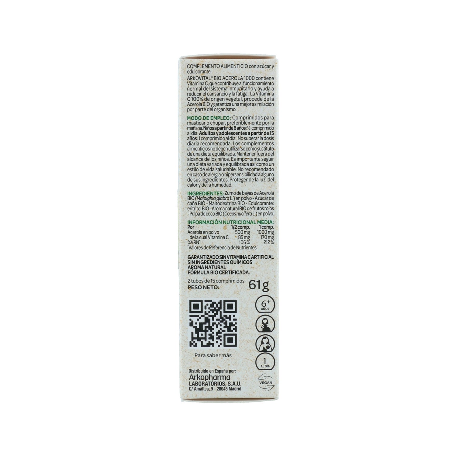 Arkopharma Arkovital BIO Acerola 1000 Vitamina C 30comp é um complemento multivitamínico que contribui para reduzir a fadiga e promove o bom funcionamento do sistema imunológico.