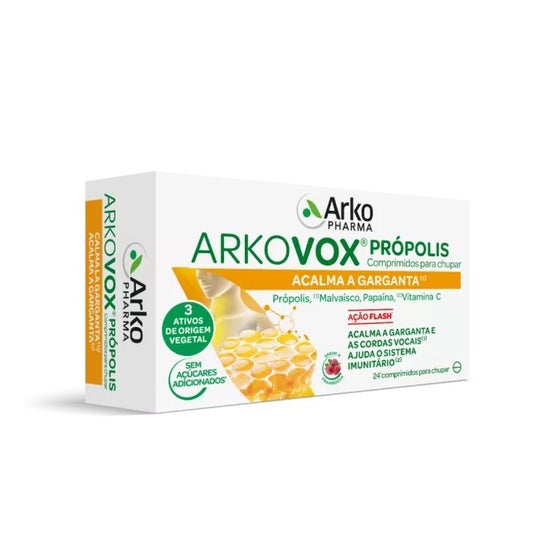 Arkovox propolis + vitamina C sabor a framboesa é um remédio natural especialmente concebido para suavizar a zona interna do pescoço, graças a uma composição emoliente à base de própolis, malva, papaína e vitamina C, todos os ingredientes necessários para prevenir a oxidação celular e restaurar a estabilidade do corpo, com um agradável sabor a framboesa.