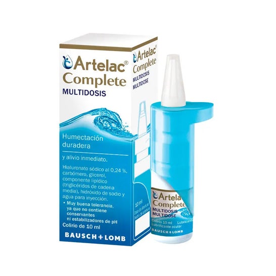 Artelac Completo Multidose 10ml é um lubrificante ocular que ajuda a melhorar a humidade ocular seca.
