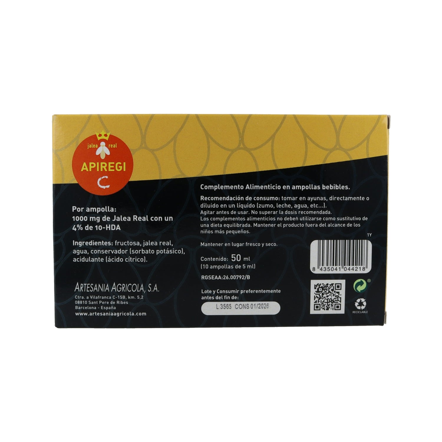 Suplemento alimentar em formato de ampola bebível, feito a partir de geleia real concentrada, que ajuda a melhorar o desempenho físico e mental em situações normais e em momentos de stress. Fornece 1000mg de geleia real fresca, que também promove um sistema imunitário saudável.