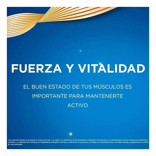 Contém Vitamina C, B6 e B12 para reduzir o cansaço do dia-a-dia. Cálcio necessário para o fortalecimento dos ossos, Vitamina D que contribui para o normal funcionamento do sistema imunitário e ajuda os músculos a funcionar normalmente e Proteína que ajuda a manter a massa muscular e a manter os ossos em condições normais.