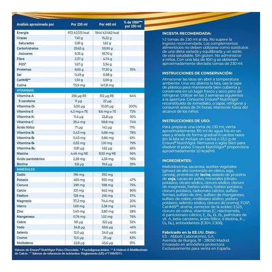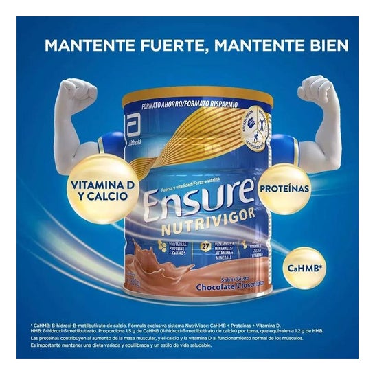 Ensure NutriVigor Chocolate 850g é um suplemento alimentar que fornece os nutrientes básicos para fortalecer o organismo. A sua fórmula ajuda a reduzir a fadiga e o cansaço, e a manter a qualidade dos ossos e dos músculos.