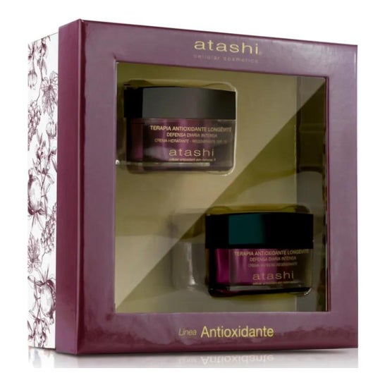 OCreme Antioxidante Celular Atashi 50ml + Creme Hidratante SPF15 50ml éuma caixa especial Atashi concebida para o cuidado da pele.