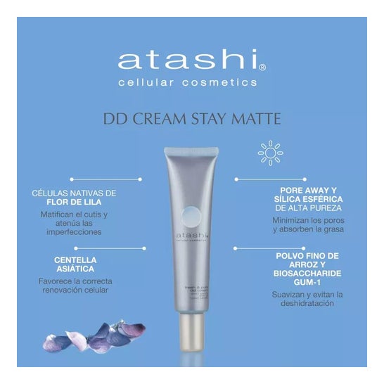 O creme Atashi® fresh&pure DD mantém o tom mate intenso 40ml é um creme matificante que unifica o tom da pele sem a secar. Também protege a pele contra os raios UV e IRA.