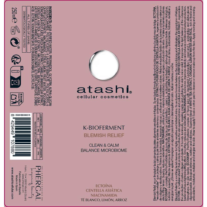 Atashi K-Bioferment Blemish Relief Clean&Calm 250ml é um limpador facial calmante para peles altamente sensíveis e irritadas. Sua fórmula exclusiva, inspirada na cosmética coreana, equilibra o microbioma e elimina os sintomas de fadiga.
