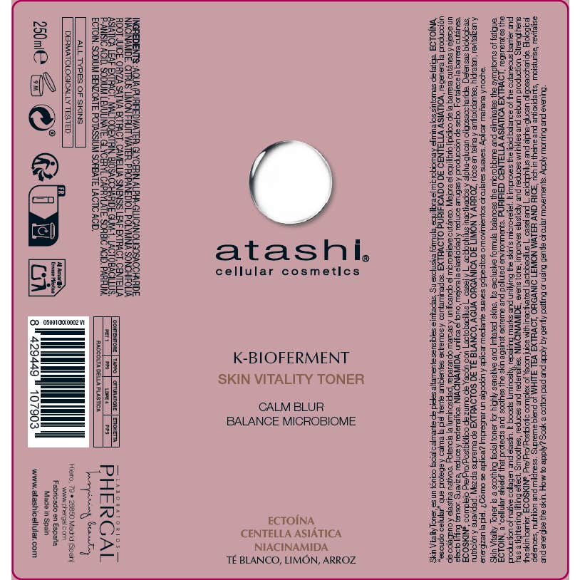 Atashi K-Bioferment Skin Vitality Toner Calm Blur 250ml é um tônico facial calmante para peles altamente sensíveis e irritadas. Sua fórmula exclusiva, baseada na cosmética coreana, equilibra o microbioma e elimina os sintomas de fadiga.
