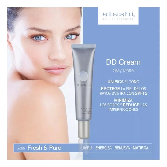 Atashii® fresh&pure DD cream stay matte tom médio 40ml é um creme matificante que evapora o tom da pele sem a secar. Também protege a pele dos raios UV e IRA.