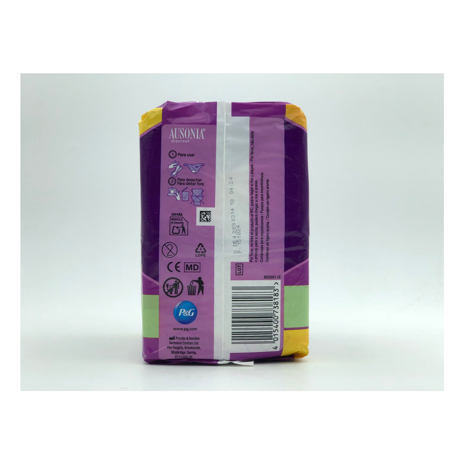 O Ausonia Discreet é perfeito para absorver as perdas de urina e eliminar o mau cheiro. Graças ao seu núcleo duplo e ao sistema OdourLock, bloqueia a humidade e neutraliza o odor de forma rápida e eficaz. Uma compressa ligeiramente perfumada, fina, discreta e flexível que se adapta perfeitamente ao corpo! Ideal para pessoas idosas ou grávidas, você pode fechá-los após o uso para eliminação discreta.