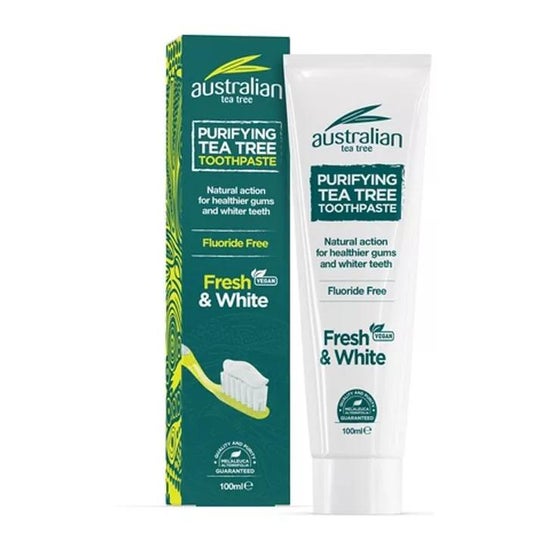 Australian Tea Tree Fresh & White é uma pasta de dentes natural 100% com óleo de árvore do chá, ideal para proteger as gengivas e manter os dentes brancos.
