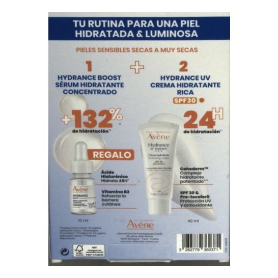 Avene Pack Hydrance Creme Hidratante Rica SPF30 + Hydrance Boost Sérum é um conjunto de cuidados com a pele que contém: