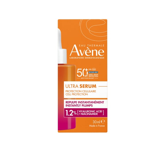 INOVAÇÃO AVÈNE: Uma textura de sérum ultraleve que combina uma proteção solar muito alta SPF50+ com um efeito redensificante instantâneo, projetada para o uso diário.