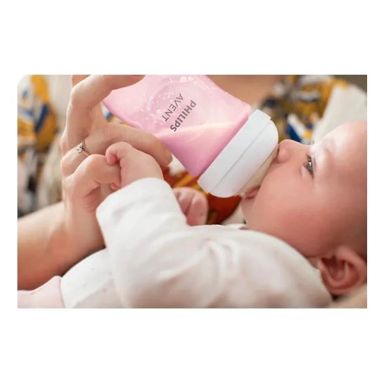 Além disso, a mamadeira é fácil de usar, montar e limpar e é compatível com a linha Philips Avent, exceto com as mamadeiras e copos com alças Classic. Recomenda-se usar esta mamadeira natural rosa apenas com tetinas natural.