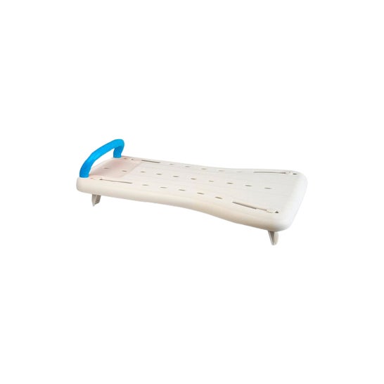 Tábua adaptável à banheira com pega ergonómica. Está desenhada com extremidades de diferentes dimensões para facilitar as tarefas de higiene pessoal. Proporciona autonomia e estabilidade durante o banho a pessoas com mobilidade reduzida. A extremidade larga da tábua ajuda na colocação do utilizador e a extremidade mais estreita facilita a higiene íntima. Mede 69cm de comprimento.