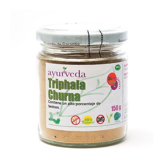 A churna Triphala em forma de pó é uma mistura ayurvédica. É utilizado como um suplemento dietético numa base regular ou diária. Ajuda a harmonizar as funções do sistema digestivo, proporcionando um alto conteúdo de taninos e bem-estar geral. É composto pelos seguintes ingredientes: haritaki, bahera e amla. Adequado para adultos e veganos. Sem glúten.