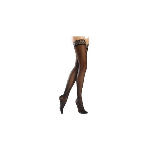B/Sigv2 Ess Sem/Tr Af Black Xl N 1ud é uma meia de compressão médica da SIGVARIS. Está desenhada para tratar e prevenir distúrbios venosos nas pernas. Alivia e controla sintomas de insuficiência venosa, como cansaço, inchaço ou peso, melhorando a saúde circulatória e o bem-estar diário. Graças à sua compressão graduada e design semitransparente, favorece o retorno venoso e reduz o risco de edema, proporcionando alívio perceptível desde o primeiro uso. Destaca-se pelo seu conforto superior, ajuste seguro e respirabilidade, permitindo seu uso durante todo o dia sem desconforto. Indicada para pessoas com tendência ao inchaço, profissionais que passam muitas horas em pé ou com histórico de problemas venosos, ajuda a manter as pernas leves e saudáveis.
