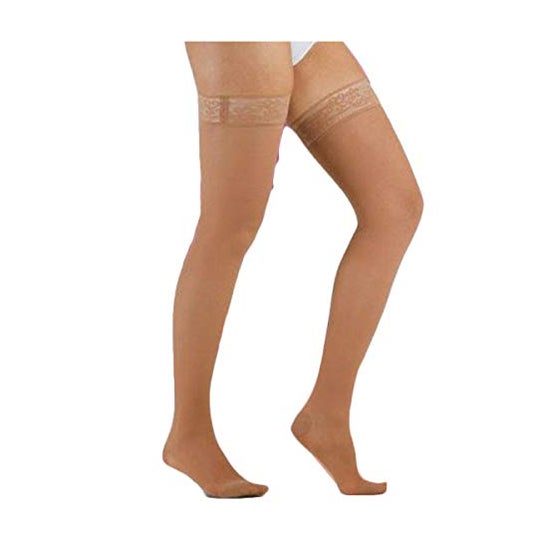 Graças à sua compressão graduada, favorece o retorno venoso, reduz o inchaço e ajuda a prevenir os edemas. Seu tecido suave e respirável se adapta confortavelmente à perna, oferecendo discrição e eficácia durante todo o dia.