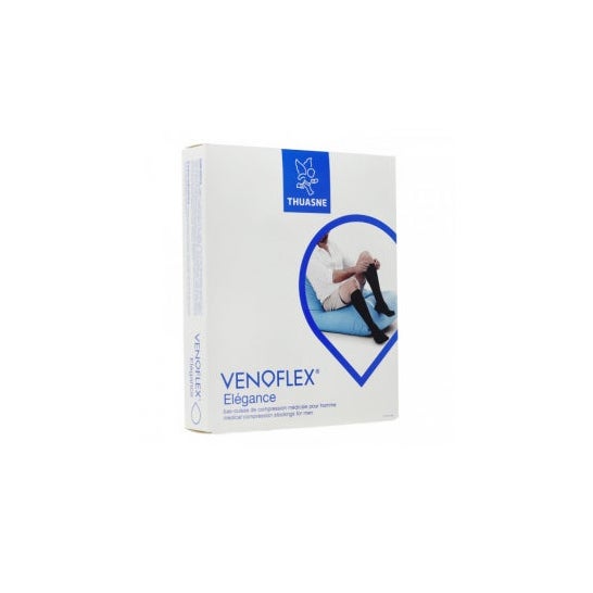 B/Venof2 Eleganc Ag C H L Preto1 da THUASNE é uma meia de compressão médica que melhora a circulação venosa nas pernas. É ideal para prevenir e aliviar sintomas de insuficiência venosa leve ou moderada.
