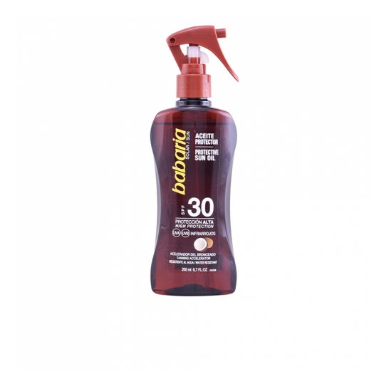 Óleo de proteção solar em formato spray, formulado com óleo de coco, extrato de aloé vera e filtros protectores contra as radiações UVA, UVB e IR. Contribui para um bronzeado rápido e homogéneo sem efeitos nocivos para a pele. Além disso, hidrata, nutre, acalma e dá um aspeto radiante à epiderme. É resistente à água e adequado para todos os tipos de pele. Fator de proteção SPF30.