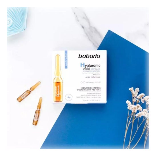 Babaria Hyaluronic Treatment 5un é composto por ampolas faciais de Ácido Hialurónico da marca Babaria, numa embalagem de 5 unidades de 2ml cada. Estas ampolas são recomendadas para todos os tipos de pele, proporcionando hidratação ao rosto e gerando um efeito plumping que deixa a pele suave. Ajudam também a esbater pequenas rugas ou linhas de expressão. São adequadas para serem utilizadas tanto de dia como de noite e foram submetidas a testes dermatológicos para garantir a sua eficácia e segurança.