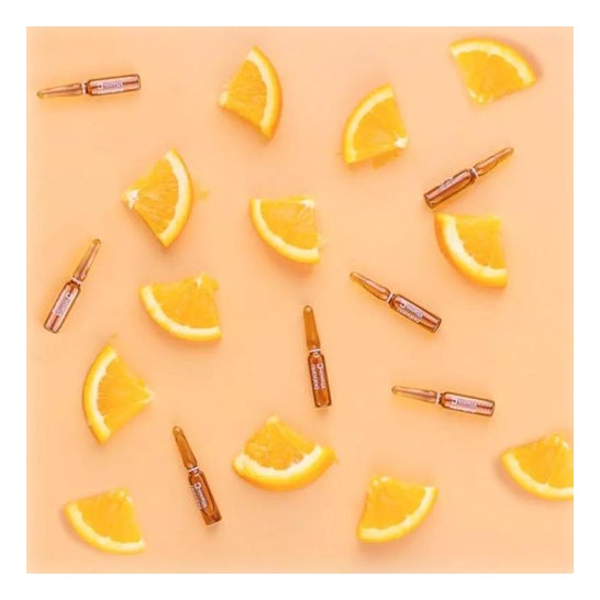 Sérum facial em ampolas, formulado com 10% de vitamina C pura e proteoglicanos. A sua composição rica contribui para a luminosidade da pele, a hidratação e o polimento das texturas faciais. Ajuda igualmente a prevenir o envelhecimento prematuro, graças ao seu efeito antioxidante e às suas propriedades anti-radicais livres. A vitamina C desempenha um papel importante na formação do colagénio natural da pele. Os proteoglicanos actuam mantendo uma hidratação profunda, ajudando a reparar a pele desidratada, desvitalizada e baça.