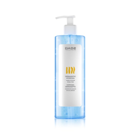 Babé Hidrogel Dermaseptic Hydroalcoholic Gel 390ml é um gel desinfetante para as mãos enriquecido com um complexo hidratante para limpar sem secar a pele.