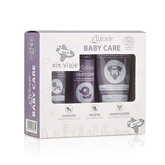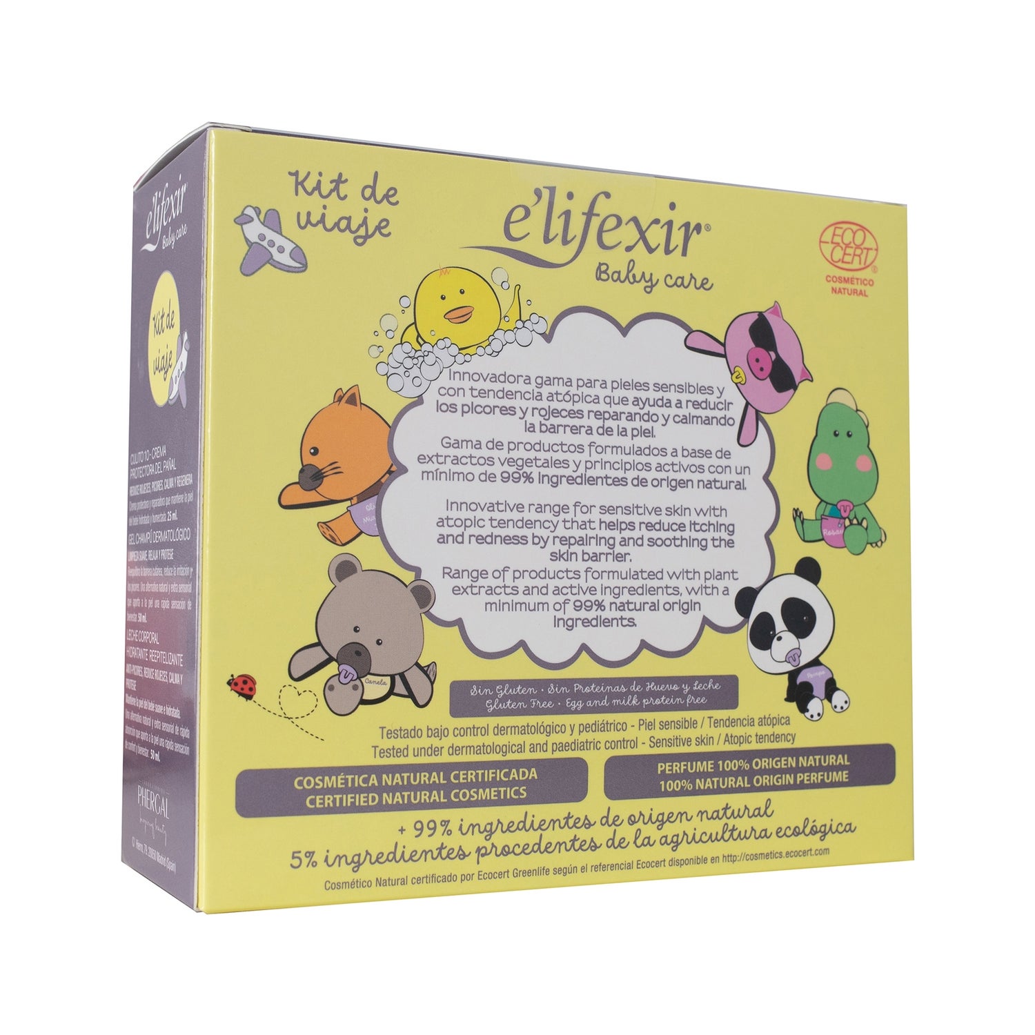O Baby Care Travel Kit é um pack ideal para levar em viagem ou para descobrir a inovadora gama de produtos de cuidados do bebé elifexir, especialmente concebida para a pele sensível e com tendência atópica.