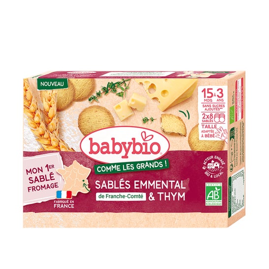 BabyBio Biscoitos Emmental de Franche Comté & Tomilho é um delicioso lanche projetado especialmente para os menores. Esses biscoitos, elaborados com autêntico queijo de Franche-Comté, são ideais para satisfazer os pequenos desejos dos bebês. Seu tamanho se adapta perfeitamente às mãos e ao paladar das crianças, e sua combinação de textura crocante e derretida é irresistível.