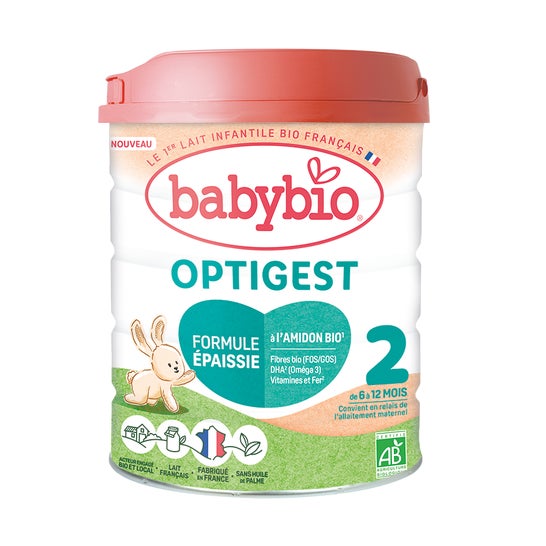BabyBio Optigest 2 6-12M 800 g é uma fórmula de leite em pó projetada especificamente para bebês de 6 a 12 meses. Esta preparação é enriquecida com amido orgânico, o que a torna mais espessa e facilita seu consumo em situações particulares. É uma opção ideal para oferecer momentos de suavidade aos bebês com sensibilidade digestiva.