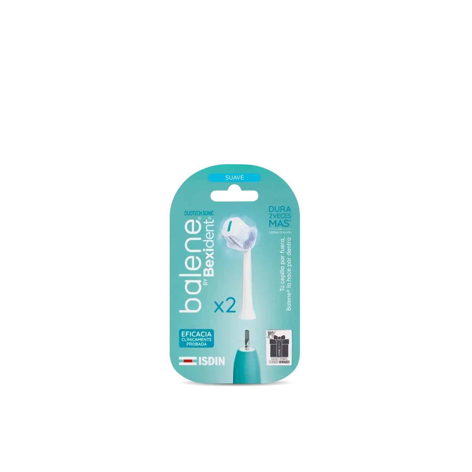 Balene Duotech Sonic Escova Suave Recargas 2 Unidades é um produto projetado para complementar a escova de dentes Balene by Bexident® Duotech Sonic Aqua. Este sistema de recargas permite manter sempre à disposição uma escova que limpa eficazmente tanto a face interna quanto a externa dos dentes de maneira simultânea.
