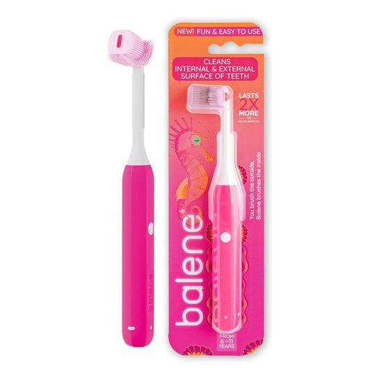 Balene Kids Escova Dental Infantil Fúcsia 1ud é uma escova inovadora projetada para limpar simultaneamente a parte interna e externa dos dentes. Esta escova foi especialmente pensada para manter a higiene bucal das crianças, garantindo uma limpeza completa de seus dentes e gengivas. Seu design é confortável, atraente e fácil de manusear para os pequenos.