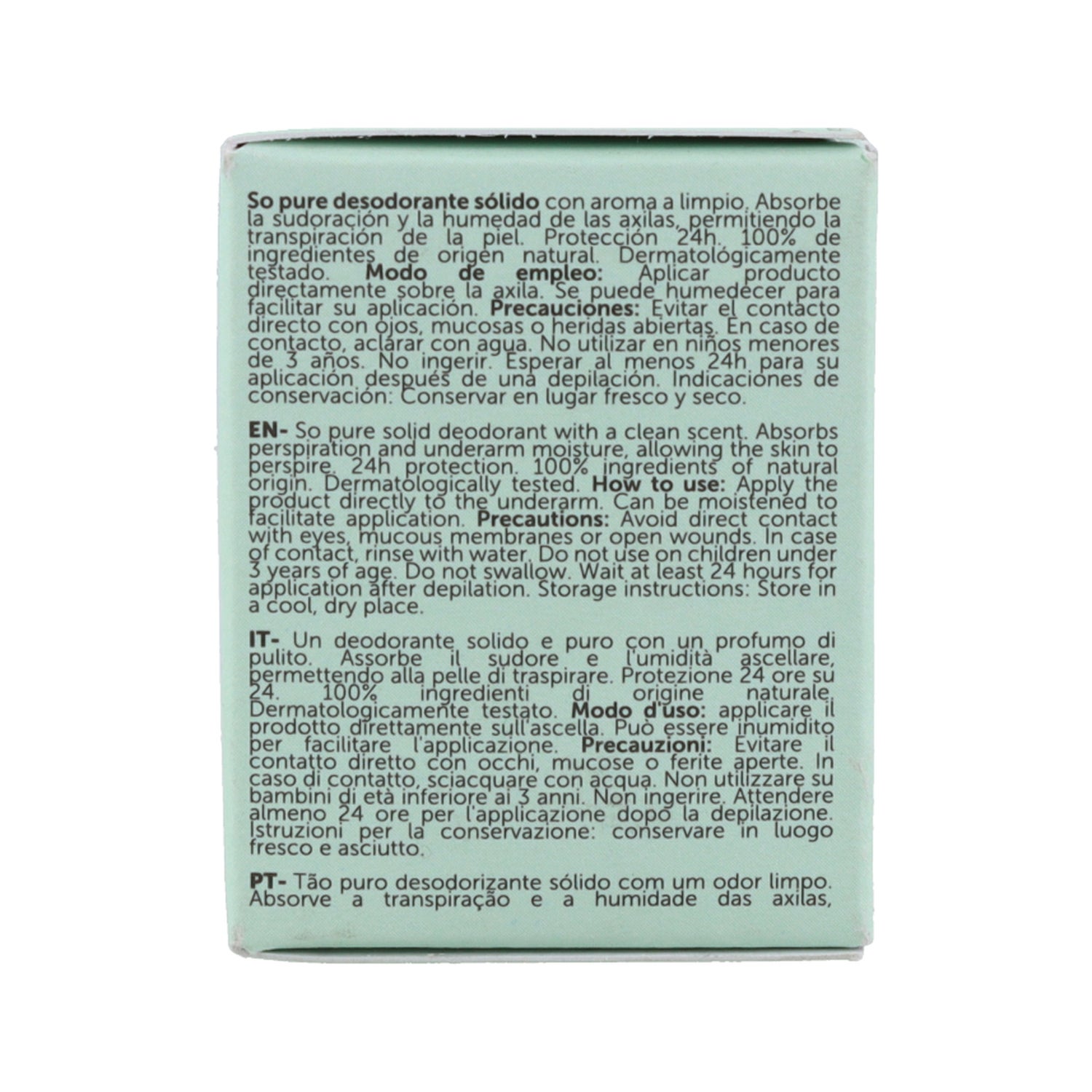 Desodorizante sólido feito com ingredientes naturais para o cuidado da pele das axilas antitranspirantes. Formulado com óleo de algodão, coco, extracto de flor de ylang ylang, bicarbonato de sódio, carvão activado em pó e zinco. Ajuda a limitar a acção das bactérias causadoras de odores e a absorver toxinas, permitindo que a epiderme respire. Ajuda a manter a reidratação e a suavidade da pele, e tem uma textura fácil de aplicar que não deixa resíduos. Adequado para veganos. Sem álcool e sem alumínio. Dermatologicamente testado.