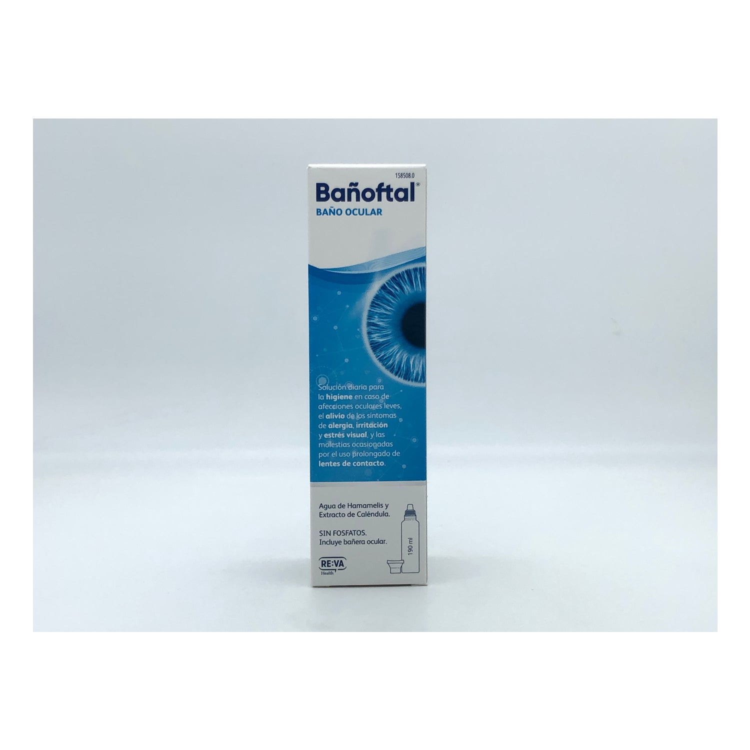 Bañoftal Eye Bath 190ml é uma solução à base de calêndula e água Hamamelis para o alívio do desconforto ocular.