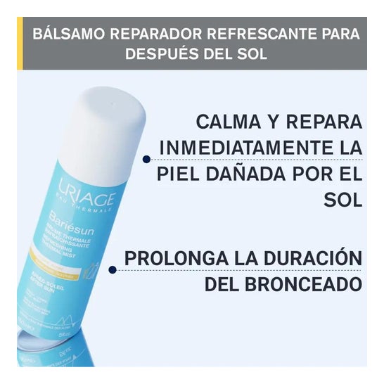Uriage Bariesun Soothing Spray suaviza a pele após a exposição ao sol e proporciona uma sensação de conforto e frescura duradoura. Também hidrata a pele e prolonga o bronzeado.