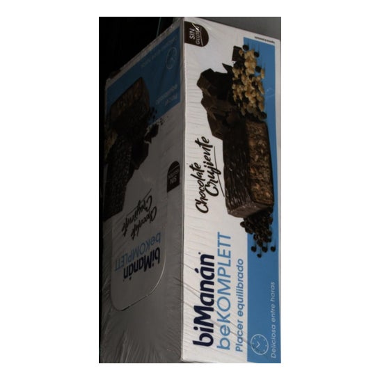 biManán beKomplett Crunchy Chocolate Bars 24 pcs é um snack de chocolate negro que contém 11 tipos de vitaminas e é rico em fibras. É ideal para um lanche a meio da manhã para saciar a fome. Estes snacks não substituem uma alimentação variada e equilibrada.