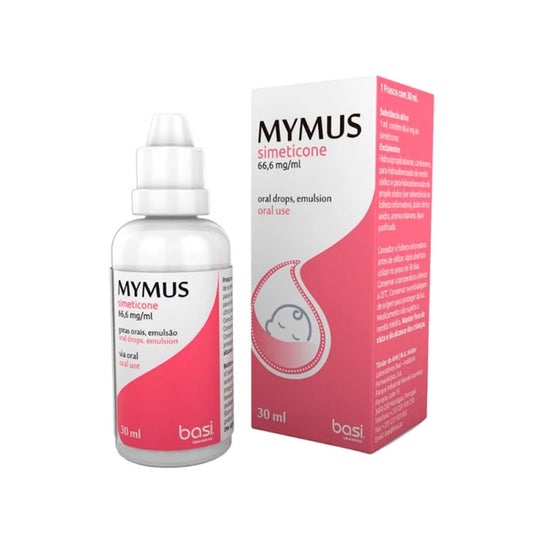 Mymus contém simeticone como substância ativa. O simeticone pertence a um grupo de substâncias que reduzem a acumulação de gases no estômago e nos intestinos. Mymus está indicado no tratamento de: