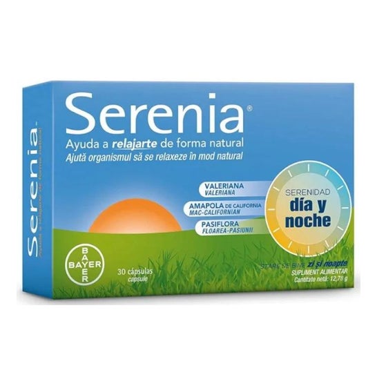 Bayer Serenia® 30 cápsulas é um suplemento dietético à base de três extratos de plantas (Valeriana, Papoila da Califórnia e Passiflora) que promovem o sono e ajudam-