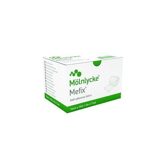 Mefix Esparadrapo 10cmx10m 1ud é uma fita adesiva não tecida que serve para fixar curativos e dispositivos na pele.