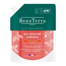 BeauTerra Gel de Duche Surgras Monoï Eco-Recarrega 1000ml é um gel de higiene diária 3 em 1 para rosto, corpo e cabelo. Limpa suavemente e ajuda a proteger as peles sensíveis com tendência à secura, mantendo o equilíbrio natural da barreira cutânea.